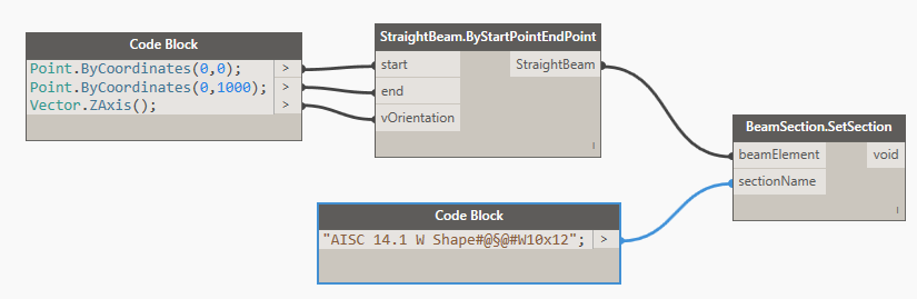 BeamSection and select SetSection. The BeamSection.SetSection node appears in the workspace. This node works for both beams and plates.