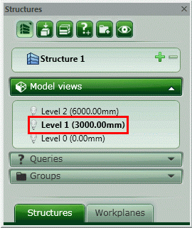 Newly created objects are placed on the active level. You can switch from one level to another by double clicking on a level. Active levels are displayed in bold on the Structures tab of the Project Explorer.