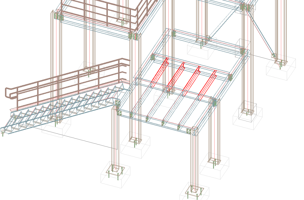 The column was checked out completely in the previous example to enable the user to modify the section. Next, partially check out the elements that you want to connect (the other rafter) knowing that another user will work on the other end of the rafter. Therefore, the rafter can be checked out partially by another user who can add connections or features at the other end of the element.