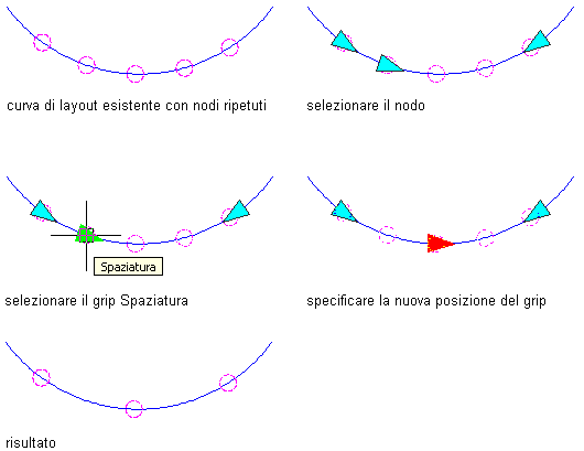 Modifica della spaziatura dei nodi di una curva di layout mediante i grip