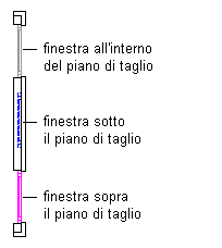 Un piano di taglio viene impostato ad una specifica altezza, ad esempio 1,4 metri. Per default, gli oggetti sopra o sotto quel livello non vengono visualizzati nella vista piana. È tuttavia possibile definire un intervallo di visualizzazione sopra e sotto il piano di taglio. Anche i componenti oggetto all'interno di quell'intervallo vengono visualizzati. Questa funzione è utile se si intende visualizzare una finestra che si trova sopra o sotto il piano di taglio, ma che deve essere inclusa nella visualizzazione.