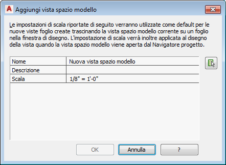 | Immettere una descrizione per la vista dello spazio modello | Fare clic sul campo Descrizione e aggiungere una descrizione alla vista dello spazio modello. |