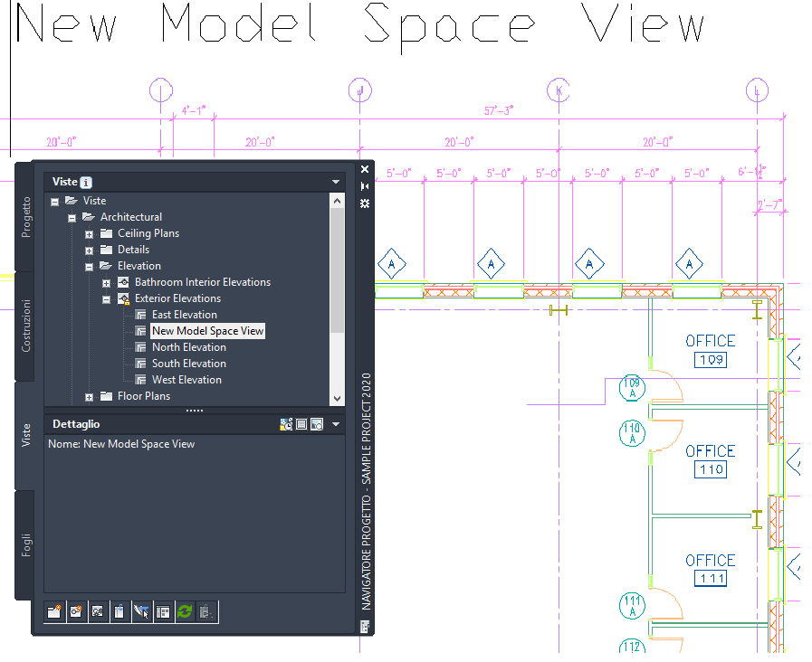 Per creare un disegno visualizzato nella scheda Modello, è necessario salvare il modello di vista di default. Quando si crea il disegno di una nuova vista, tutte le costruzioni ad esso assegnate presenteranno dei riferimenti nel disegno della vista. Se il modello non si apre nello spazio modello attivo, la costruzione presenterà un riferimento nello spazio carta.