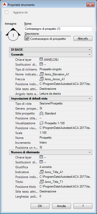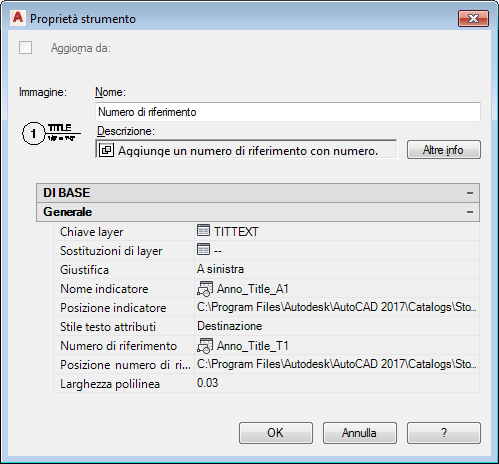 Indicatore Generale È possibile selezionare nell'elenco il blocco usato per il simbolo del numero di riferimento.