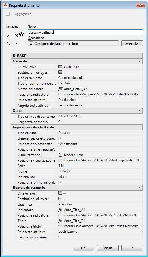 Nota: È possibile sostituire la scala impostata nello strumento durante l'inserimento del richiamo nel disegno.