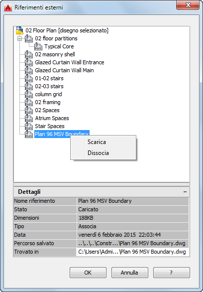 Nota: È inoltre possibile visualizzare i riferimenti esterni aprendo la costruzione nell'area di disegno di AutoCAD Architecture toolset e utilizzando la funzionalità Gestione Xrif di AutoCAD.