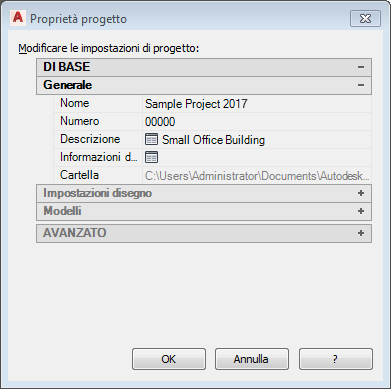 Per definire o modificare le proprietà di base del progetto, attenersi alla procedura indicata di seguito. Le proprietà di base appartengono a tre categorie: