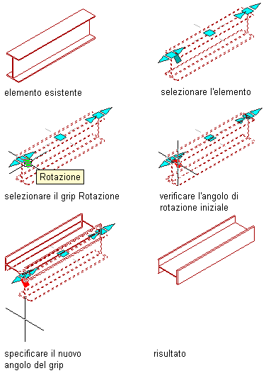 Modifica dell'orientamento della trave tramite il grip di Rotazione