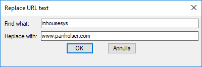 È possibile specificare un indirizzo URL completo o parziale. Ad esempio, effettuando un'unica operazione è possibile sostituire con il dominio .net tutti i riferimenti a collegamenti ipertestuali con dominio .com oppure sostituire un URL interno con un URL di un sito Web esterno.
