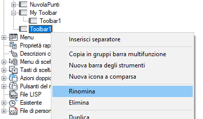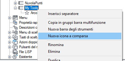 Viene creata una nuova icona a comparsa sulla barra degli strumenti e contemporaneamente viene creata la nuova barra degli strumenti in base al menu a discesa utilizzato.