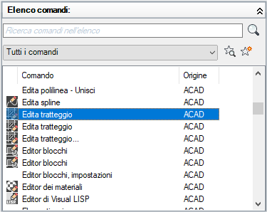 Nella parte superiore del riquadro Elenco comandi è presente la casella Ricerca comandi nell'elenco che consente di filtrare l'elenco dei comandi in base ad una stringa di testo immessa. Tale stringa viene confrontata con una parte qualsiasi del nome del comando e i risultati vengono visualizzati nella casella di riepilogo Comando.