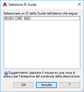 Di seguito viene riportato un esempio di descrizione comando estesa creata per l'utilizzo in un prodotto basato su AutoCAD 2009.