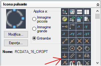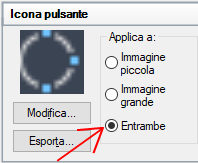Nel riquadro Icona pulsante, in Applica a, selezionare una delle tre opzioni di assegnazione dell'immagine: Immagine piccola, Immagine grande o Entrambe.