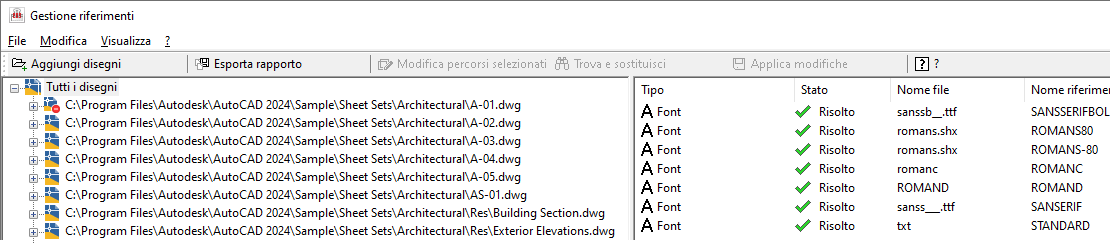 Non sarebbe meglio avere un modo per individuare rapidamente quali file di riferimento risultano mancanti senza dover aprire ciascun file di disegno? O forse è necessario aggiornare rapidamente i percorsi di tutti gli xrif senza aprire e salvare ciascun disegno.