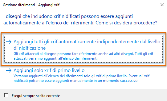 Nella finestra di dialogo Gestione riferimenti - Aggiungi xrif, fare clic su