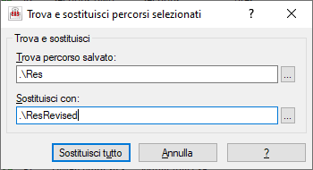Fare clic su Trova e sostituisci per visualizzare la finestra di dialogo Trova e sostituisci percorsi selezionati.