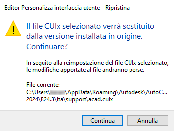 Se non si è soddisfatti delle modifiche apportate, è possibile ripristinare lo stato salvato precedente del file CUIx o le impostazioni di default del programma.