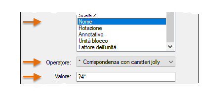 Talvolta è necessario conteggiare i blocchi utilizzando un nome del modello generale. I caratteri jolly più comunemente utilizzati sono "?" per un singolo carattere e * per qualsiasi numero di caratteri. Ad esempio, è possibile cercare tutti i blocchi che iniziano con la lettera B utilizzando B* e tutti i blocchi che contengono 4 come secondo personaggio utilizzando ?4*.