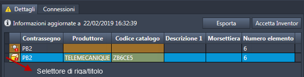 Fare clic sul selettore di riga (titolo) per selezionare l'intera riga per il componente di AutoCAD Electrical toolset.