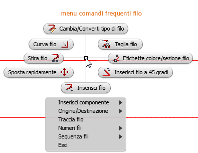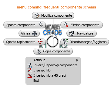 Verificare che l'area di lavoro corrente sia impostata su ACADE e Disegno 2D e Annotazione. Il menu comandi frequenti è un menu contestuale radiale. Posizionare il cursore del mouse su un oggetto elettrico e fare clic con il pulsante destro del mouse. Le opzioni del menu variano a seconda del tipo di oggetto su cui si trova il cursore.