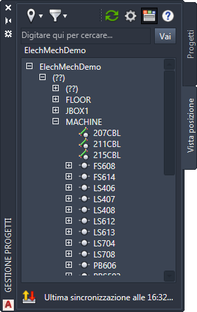 Se il progetto fa parte di un'associazione elettromeccanica, l'icona accanto a ciascun dispositivo indica il tipo di dispositivo e lo stato del collegamento.