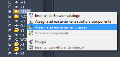 Nel disegno attivo, selezionare il componente elettrico che si desidera collegare alla parte di Inventor. La vista struttura del componente viene aggiornata in modo che venga visualizzato il componente collegato.