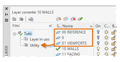 La variabile di sistema SORTORDER controlla l'ordinamento degli elenchi di layer in base ad un criterio naturale o ASCII.
