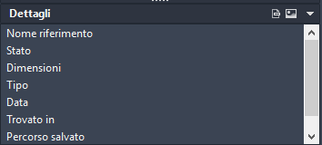 L'immagine di anteprima viene visualizzata soltanto quando nel riquadro Riferimento file è selezionato un unico riferimento file. Il riquadro dati non dispone di altri controlli. Quando non è selezionato alcun riferimento file, il riquadro visualizza un campo grigio. Se non è disponibile l'anteprima, viene visualizzato il testo "Anteprima non disponibile" al centro della finestra.