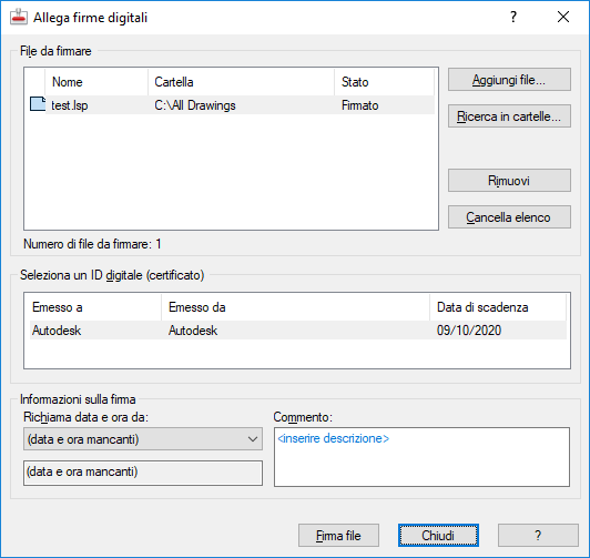 Allega una firma digitale ad ogni file indicato in questa finestra di dialogo.