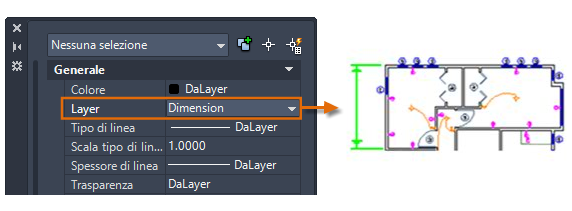È possibile impostare alcune proprietà di un oggetto in base al layer (DaLayer) o specificando la proprietà in modo esplicito, indipendentemente dal relativo layer.