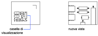 Esegue la panoramica e lo zoom di una casella di visualizzazione. Tale casella rappresenta la vista dell'utente e può essere rimpicciolita o allargata e spostata all'interno del disegno. Se si modificano la posizione e le dimensioni della casella di visualizzazione, la vista all'interno della casella viene ingrandita o ridotta, oppure spostata, in modo da riempire la finestra. Non disponibile nella proiezione prospettica.