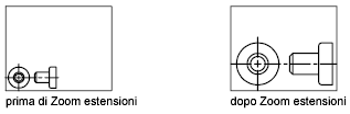 Regola il fattore di ingrandimento dell'area del disegno per l'adattamento alle estensioni di tutti gli oggetti visibili nel disegno oppure degli elementi di assistenza visuale quali i limiti della griglia (comando LIMITI), a seconda dell'elemento più grande.