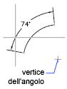 La linea di quota viene disegnata come un arco compreso fra le linee di estensione. queste ultime vengono disegnate dai punti finali dell'angolo fino all'intersezione della linea di quota.