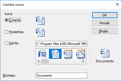 Consente di specificare un'icona da un file con estensione EXE, DLL e ICO.