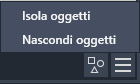 Fare clic sul pulsante Isola oggetti Trova sulla barra di stato per accedere alle opzioni che consentono di nascondere gli oggetti, isolarli e terminare l'isolamento degli oggetti.