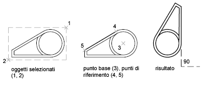 È possibile ruotare gli oggetti del disegno attorno ad un punto base specificato.