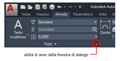 Alcuni gruppi della barra multifunzione consentono di accedere ad una finestra di dialogo correlata. Per visualizzare la finestra di dialogo, fare clic sull'utilità di avvio finestra di dialogo indicata da un'icona a forma di freccia, , nell'angolo inferiore destro del gruppo.