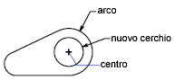 Specificare centro del cerchio o [3P/2P/Ttr (tangente tangente raggio)]: cen