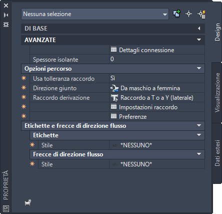 Selezionare la combinazione di raccordi che si desidera utilizzare durante l'aggiunta di una derivazione. Se si seleziona una doppia combinazione di raccordi, ad esempio Raccordo a T o a Y, viene utilizzato il primo tipo di raccordo. In caso di problemi, viene utilizzato il secondo tipo di raccordo. |
