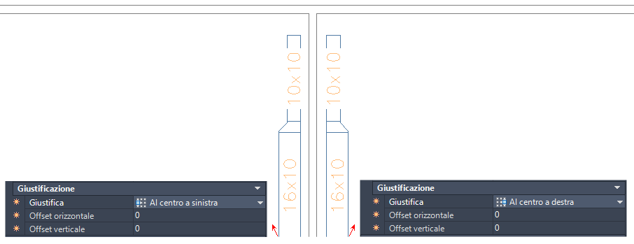 Se si inizia il disegno da un raccordo connesso ad un segmento, al nuovo segmento viene applicata la giustificazione del segmento connesso. Se non è connesso alcun segmento, viene utilizzata la giustificazione usata per ultima.