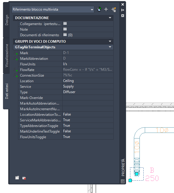Esempio di dati del gruppo di voci di computo relativi ad un diffusore da soffitto