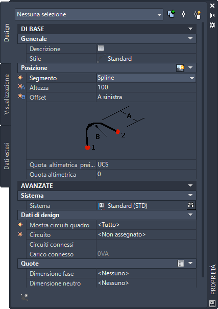 Nel riquadro proprietà verranno inoltre visualizzati gli elementi seguenti:
