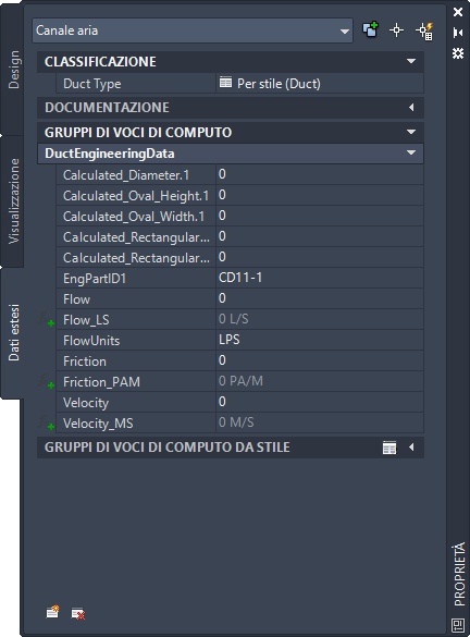 È inoltre possibile assegnare dati del gruppo di voci di computo ad oggetti a cui sono generalmente assegnati computi, ad esempio le parti multivista. Fare clic sulla scheda Dati estesi del riquadro proprietà per Gruppi di voci di computo.