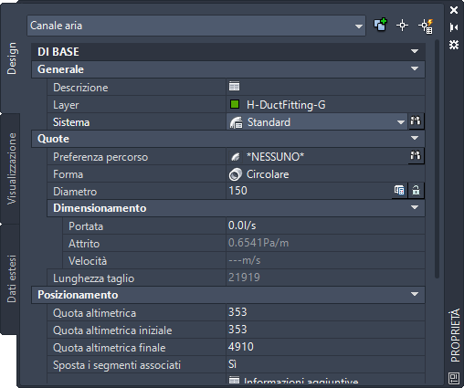 Le proprietà sono disponibili nella sezione Di base del riquadro proprietà.