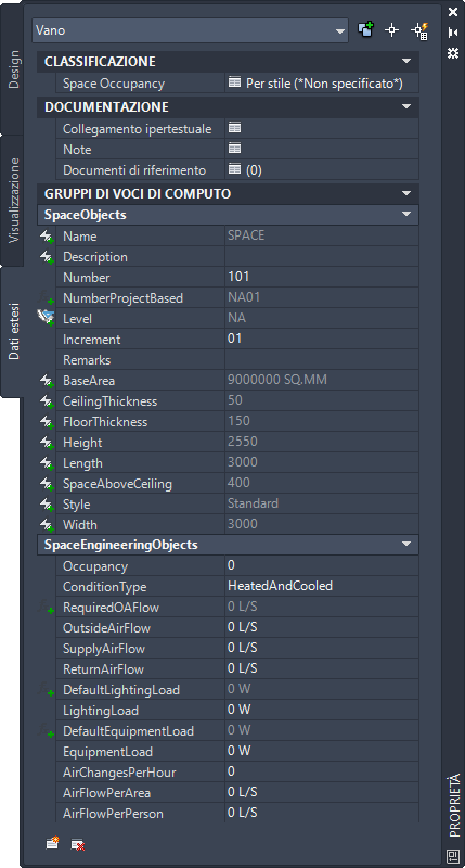 Gli stili dei dati di ingegneria possono essere applicati ai vani e alle zone del disegno.