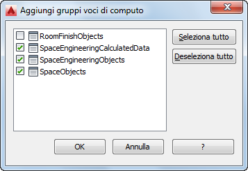 La classificazione configurata per lo stile di vano specificato è visualizzata in questo elenco. È possibile sostituirla facendo clic sul tipo di stanza e specificandone un altro nella finestra di dialogo Seleziona classificazione. Se il valore corrente è *Non specificato*, specificare un tipo di stanza.