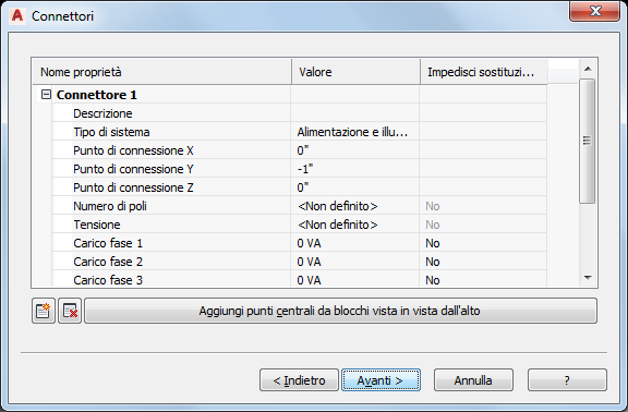 | Specificare i valori X, Y e Z per il connettore | Immettere i valori desiderati per X punto di connessione, Y punto di connessione e Z punto di connessione. |