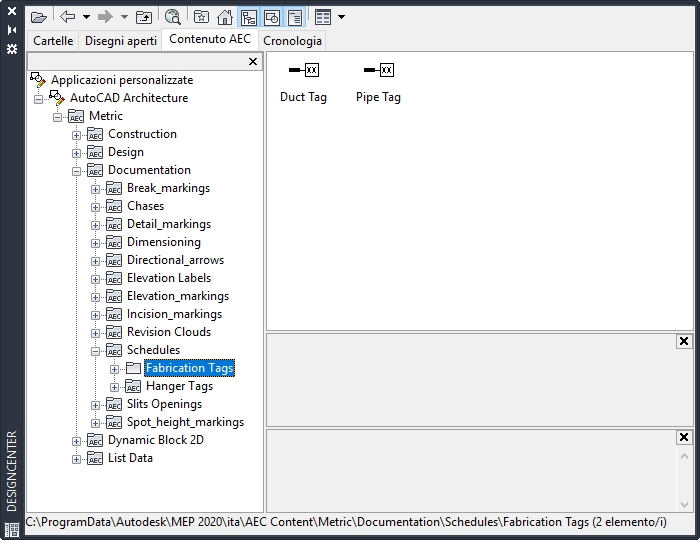 - Nella tavolozza di DesignCenter fare clic sulla scheda Contenuto AEC.