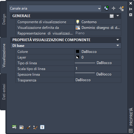 Proprietà di visualizzazione del canale aria nella scheda Visualizzazione