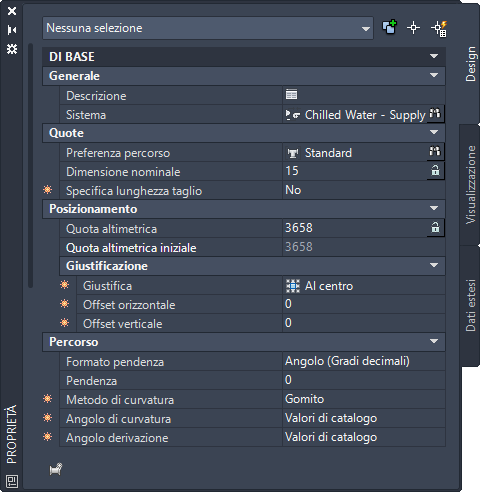 Per default, le proprietà di base sono visualizzate nel riquadro proprietà per i tubi.